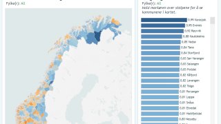 For å sikre konfidensialitet benyttes metoden «undertrykking» i denne statistikken.