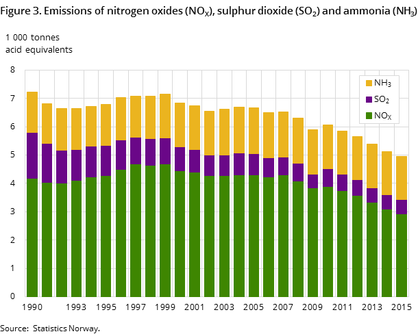 The emissions of sulphur dioxide (SO2) amounted to 16 200 tonnes in 2015, which is 2.8 per cent less than in 2014. The long-lasting declining emission trend continues, and the emissions were well below the obligation in the Gothenburg Protocol of 22 000 tonnes.