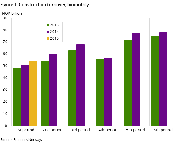 The turnover in the construction industry was NOK 54 billion in the 1st period of 2015. This corresponds to a growth of NOK 2.2 billion or 4.3 per cent compared to the same period in 2014.