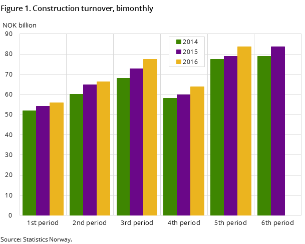 The turnover in the construction industry was NOK 83.5 billion in the 5th period of 2016. This corresponds to a growth of 5.7 per cent compared to the same period in 2015.