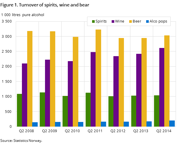 During the 2nd quarter of this year, the turnover of wine, beer and spirits rose by 8.0, 2.8 and 1.6 per cent respectively compared to the same period last year. These figures are affected by the timing of Easter.