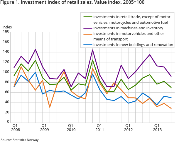 There was a decline in all types of investments. The greatest decline was in investments in motor vehicles and other means of transport, by more than 25 per cent from the 3rd quarter last year. In machines and inventory, the investments were 22 per cent lower in the 3rd quarter of 2013 than the same quarter last year, while investments in building and renovation saw a 15 per cent drop in the same period.