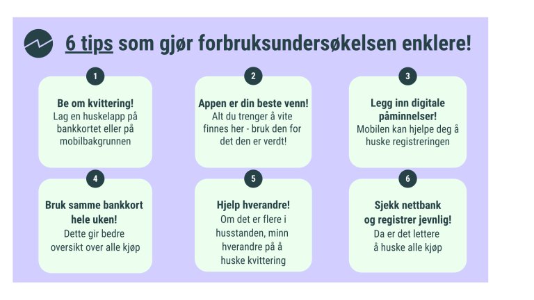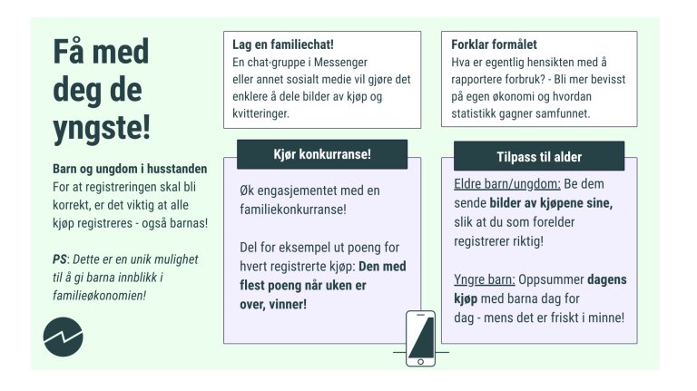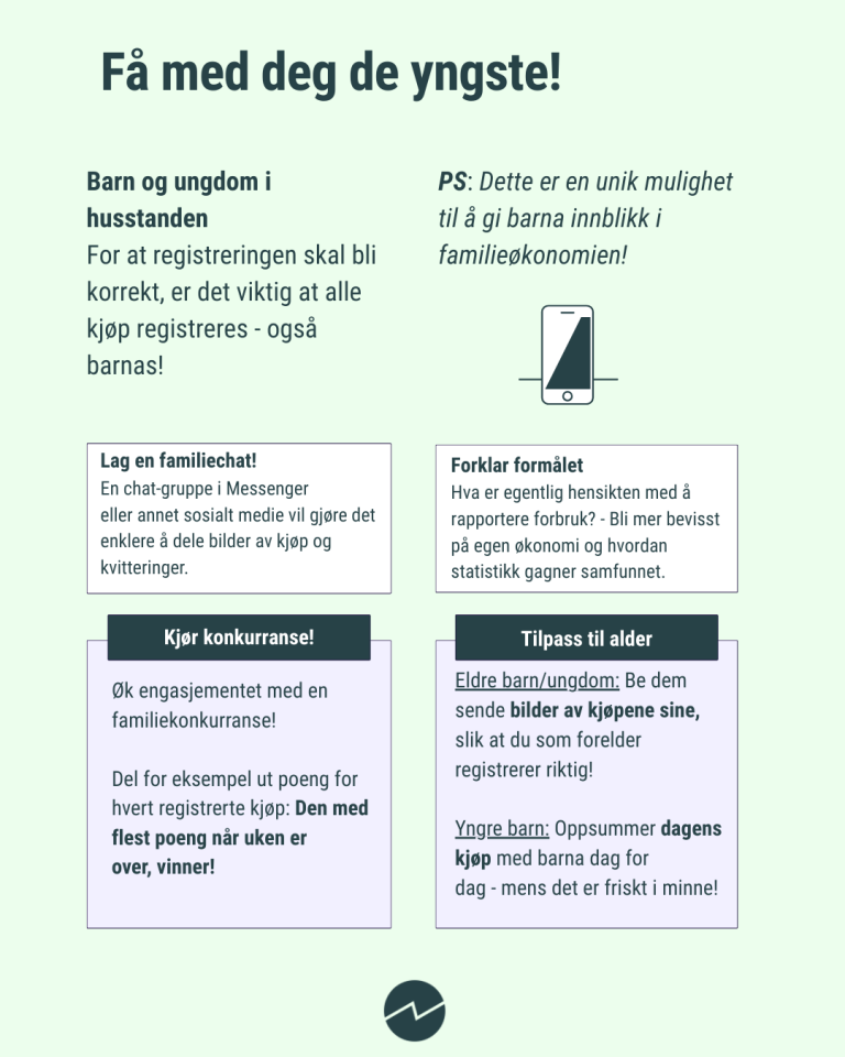 - Registrere alle husholdningens kjøp av varer og tjenester i 7 dager