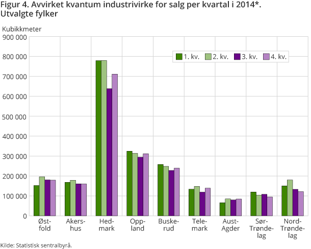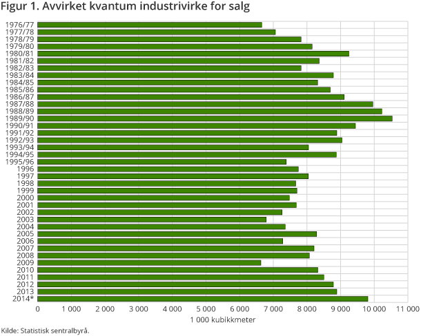Skogeierne solgte i alt 9,8 millioner kubikkmeter tømmer til industriformål i 2014. Det er 920 000 kubikkmeter mer enn året før, som utgjør en økning på 10 prosent.
