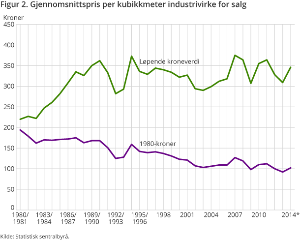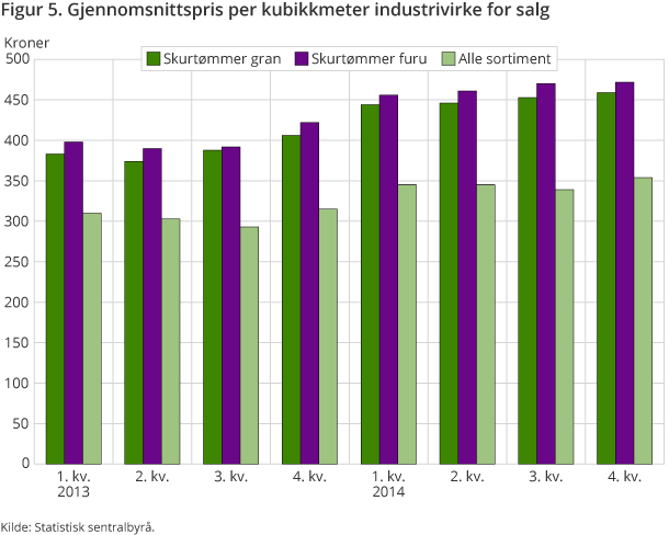 De foreløpige beregningene viser at skogeierne i gjennomsnitt fikk 346 kroner per kubikkmeter for tømmeret, noe som er 37 kroner høyere enn for ett år siden. Gjennomsnittsprisen for sagtømmer av gran og furu økte med henholdsvis 62 og 64 kroner, mens massevirke av gran og furu gikk ned med henholdsvis 9 og 7 kroner per kubikkmeter. For sagtømmer var gjennomsnittsprisen per kubikkmeter på 450 kroner for gran og 464 kroner for furu.