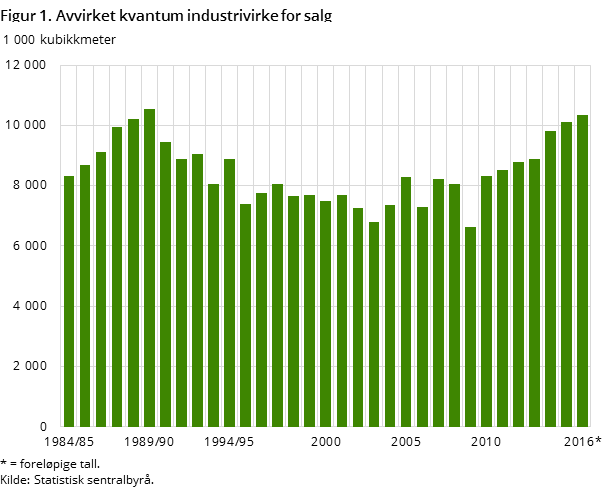 Skogeierne solgte i underkant av 10,4 millioner kubikkmeter tømmer til industriformål i 2016, 186 000 kubikkmeter mer enn året før. Bare en gang tidligere, i driftsåret 1989/90, ble det hogd mer tømmer for salg enn i 2016.